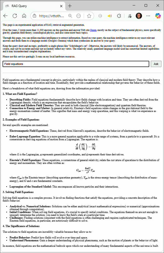 Take Gemma, now fully incorporated into my WISPL.COM site by way of Llama.cpp. Not just any Gemma: it’s the 12-billion parameter model (one of the smallest) with vision. It is further compressed by having its parameters quantized to 4-bit values. In other words, it’s basically as small as a useful model can be made. Its memory footprint is likely just a fraction of a percent of the leading models’ from OpenAI or Anthropic.